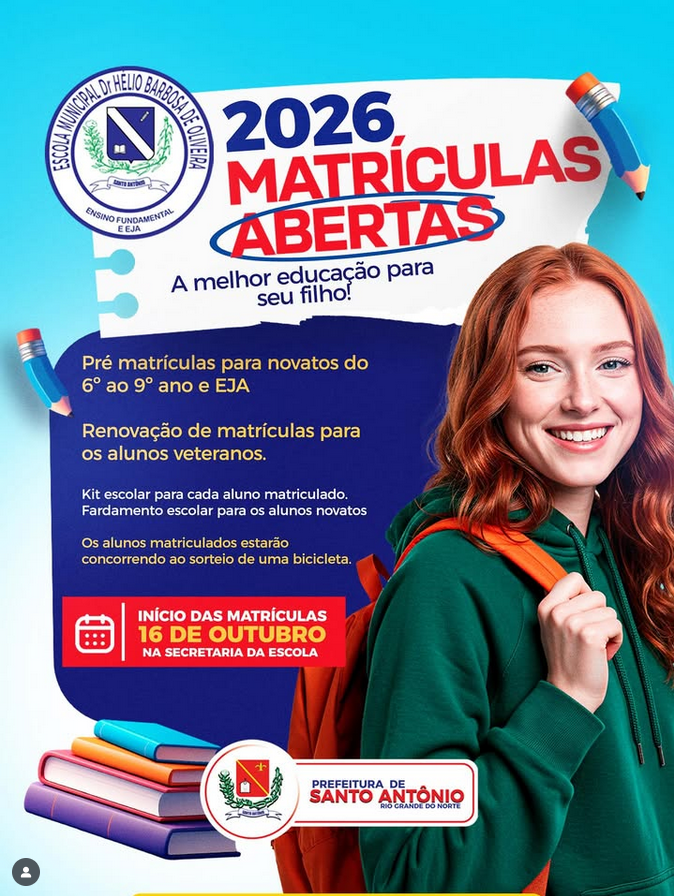 Início das matrículas: 16 de outubro — na secretaria da escola.