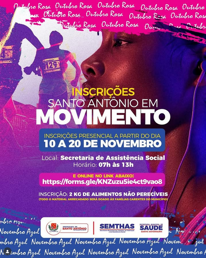 No dia 23 de novembro, durante a tarde, Santo Antônio será palco da Corrida de Atletismo Santo Antônio em Movimento, com percurso de 5 KM pelas principais ruas da cidade.