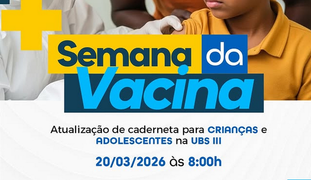 Semana da Vacina chegou!É hora de cuidar da saúde de quem você ama Leve crianças e adolescentes para atualizar a caderneta de vacinação.20/03/2026 8h UBS IIIVacinar é proteger hoje e garantir um futuro mais saudável!